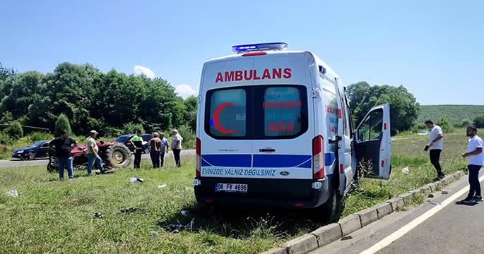 ALPARSLAN DİYARI- Ü.G. idaresindeki 06 FV 4696 plakalı hasta nakil aracı, Karasu-Adapazarı yolu Darıçayırı sapağında aynı yönde giden Yusuf C. idaresindeki traktöre arkadan çarptı.
