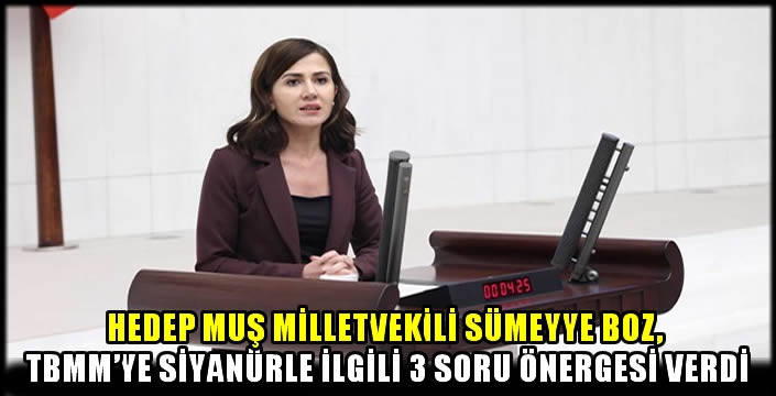 ALPARSLAN DİYARI- HEDEP Muş Milletvekili Sümeyye Boz, Ağrı’nın Diyadin ilçesinde Koza Altın İşletmeleri tarafından köylerinin ortasında yer alacak olan maden sahasında patlatma yapılacağı, siyanür başta olmak üzere yüzlerce ton kimyasal madde kullanılacağı altın aramalarının Murat Nehri’ni de ele alarak oluşturacağı zararlarla ilgili TBMM’ye 3 soru önergesi sundu.