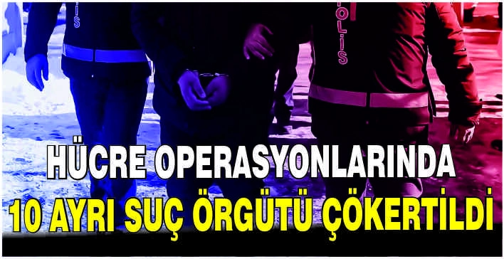 Bakan Yerlikaya sosyal medya hesabından yaptığı açıklamada, son 15 gün içinde Jandarma tarafından düzenlenen "Hücre" operasyonlarında, Iğdır’da E.Ç.’nin elebaşılığını yaptığı, İstanbul’da N.A.’nın elebaşılığını yaptığı, Afyonkarahisar’da Ş.Y.'nin elebaşılığını yaptığı, Balıkesir’de M.A.’nın elebaşılığını yaptığı, Şanlıurfa’da M.K.‘nin elebaşılığını yaptığı, Yalova‘da M.B.’nin elebaşılığını yaptığı, Manisa’da C.G.’nin elebaşılığını yaptığı, Antalya’da M.Y.’nin ve M.A.Ç.’nin elebaşılığını yaptığı 2 ayrı örgütün, Mersin’de M.E.Ö.’nün elebaşılığını yaptığı 10 ayrı organize suç örgütünün çökertildiğini duyurdu.