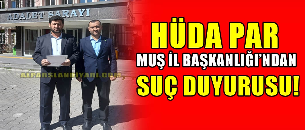 ALPARSLAN DİYARI- Hür Dava Partisi (HÜDA PAR) Muş İl Başkanlığı 31 Mart Mahalli İdareler Seçiminden bir gün önce sosyal medya hesaplarından yayılan ‘seçim çalışmaları yalan, rüşvet ve iftira’ iddialarıyla ilgili Muş Cumhuriyet Başsavcılığında suç durusunda bulundu.