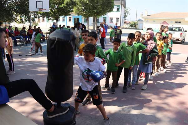 Son olarak bir ilkokul öğrencisinin çağrısı üzerine Emek Mahallesi'ndeki Fatih Sultan Mehmet İlkokuluna giden gönüllü gençler ve liderleri, buradaki yaklaşık 200 öğrenciyle okulun bahçesinde yüz boyama, akıl zeka oyunları, halat çekme ve okçuluk gibi çeşitli sportif faaliyetler yaptı.
