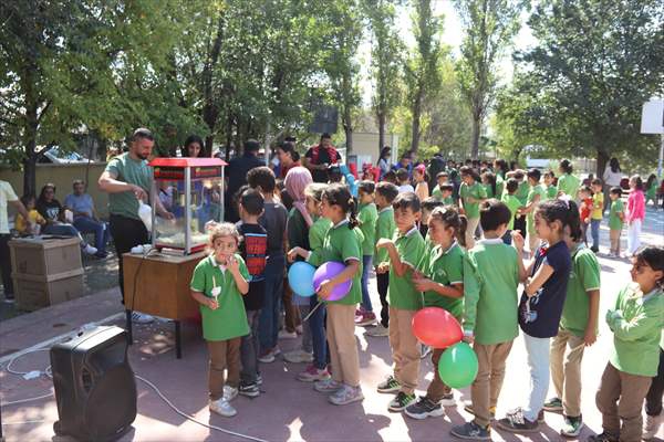 Müzik eşliğinde öğrencilerle çeşitli oyunlar oynayan gönüllü gençler, çocuklara patlamış mısır ve pamuk şekeri ikram etti.