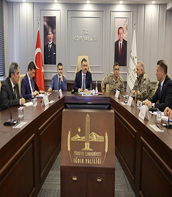 ALPARSLAN DİYARI- Iğdır Valisi Ercan Turan başkanlığında, Valilikte düzenlenen toplantıya, Cumhuriyet Başsavcısı Meriç Dede, İl Emniyet Müdürü Niyazi Turgay, İl Jandarma Komutanı Albay Nihat Özkök ve ilgililer katıldı.