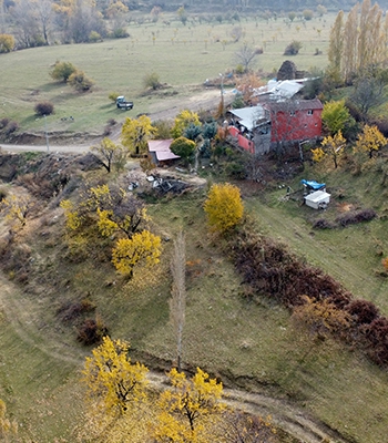 Ağaçlar ile bitkilerin sarı, kahverengi ve yeşilin tonlarına büründüğü vadi, dronla görüntülendi.