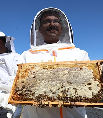 Daha sonra Turan, Zorba ile kovanları açıp ilk balı hasat ederek üreticilere bereketli bir sezon diledi.