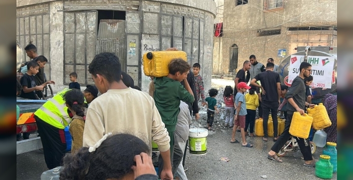 Altyapının tamamen çökmesiyle içme suyu kaynaklarının büyük bölümü kullanılamaz hale gelirken, İHH günlük olarak binlerce kişiye temiz içme suyu ulaştırıyor. Su dağıtım noktalarında toplanan çocukların yüzlerindeki tebessüm, en zor koşullarda bile umudun var olduğunu gösteriyor. Bir anne, 'Çocuklarımız için su bulmak artık bir lüks değil, hayatta kalma mücadelesi' diyor.