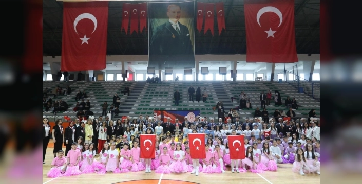 Şakir Lakşe İlkokulu'nun organizesiyle İnegöl Kapalı Spor Salonu'nda devam eden kutlamalar, öğrencilerin birbirinden renkli ve etkileyici gösterilerine sahne oldu. Protokolün de tam kadro katıldığı programda, minik yürekler sahnedeki performanslarıyla izleyenlere unutulmaz anlar yaşattı. Şiirler, halk oyunları, koro gösterileri ve modern danslarla dolu programda, öğrencilerin enerjisi ve başarısı büyük alkış aldı. Ayrıca, çeşitli yarışmalarda dereceye giren öğrencilere ödülleri takdim edildi.