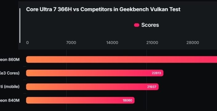 Intel'in yeni APU'su, AMD'nin Radeon 840M entegre grafik birimine kıyasla %26'lık önemli bir performans avantajı sağlıyor. Bu sonuçlar, Intel'in yeni işlemcisinin giriş ve orta seviye dizüstü bilgisayarlarda, harici bir grafik kartına ihtiyaç duyulmadan oyun ve grafik uygulamaları için yeterli performans sunabileceğini ortaya koyuyor.