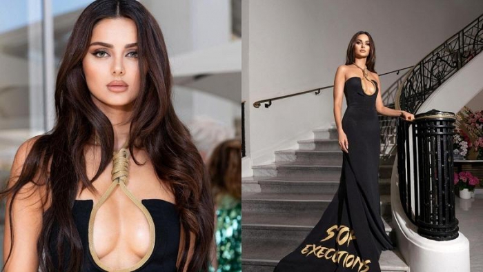 Cesur paylaşımlarıyla ön plana çıkan İranlı model Mahlagha Jaberi, Cannes Film Festivali'nde kırmızı halıya idam ipli kıyafetiyle katılınca tüm dikkatleri üzerine çekti. Jaberi'nin elbisesinin boyun kısmında idam ipi şekli ve etek kısmında da İngilizce olarak, "İdamları durdurun" yazısı yer aldı.