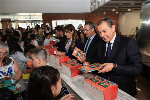 İş Kuleleri'nde gerçekleştirilen etkinlikte İş Bankası Genel Müdürü Hakan Aran, karnesini getiren çocuklara "Çocuklar Soruyor Tarih Dede Anlatıyor" kitabını hediye etti.