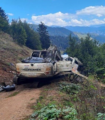 Bunun üzerine kamyon ile kasasında taşıdığı Orman İşletme Şefliğine ait ekskavatör uçuruma devrildi.
