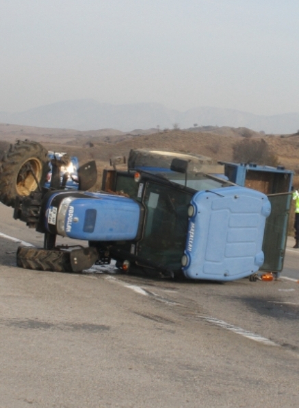 ALPARSLAN DİYARI- M.A. idaresindeki işçi servisi, Çorum-Osmancık kara yolu Kargı köyü mevkiinde, yola çıkan K.A'nın kullandığı traktörle çarpıştı.