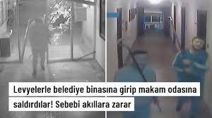 Zonguldak'ın Çatalağzı beldesinde E.Ç. ve M.Ö. isimli şüpheliler, ellerindeki levyelerle Çatalağzı Belediye binasının önü geldi. Önce belediyenin girişindeki otomatik kapının camlarını parçalayan iki şüpheli, makam odasına girene kadar önlerine çıkan tüm kapıları parçaladı.