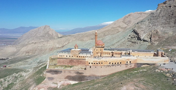 Ağrı'nın Doğubayazıt ilçesindeki tarihi İshak Paşa Sarayı'nda, Ramazan Bayramı tatili dolayısıyla yoğunluk yaşanıyor. İlçenin güneyinde tepelik alanda bulunan, doğu ile güney tarafı sarp dağlarla çevrili olan tarihi yapı, yılın her mevsimi ziyaretçi ağırlıyor.