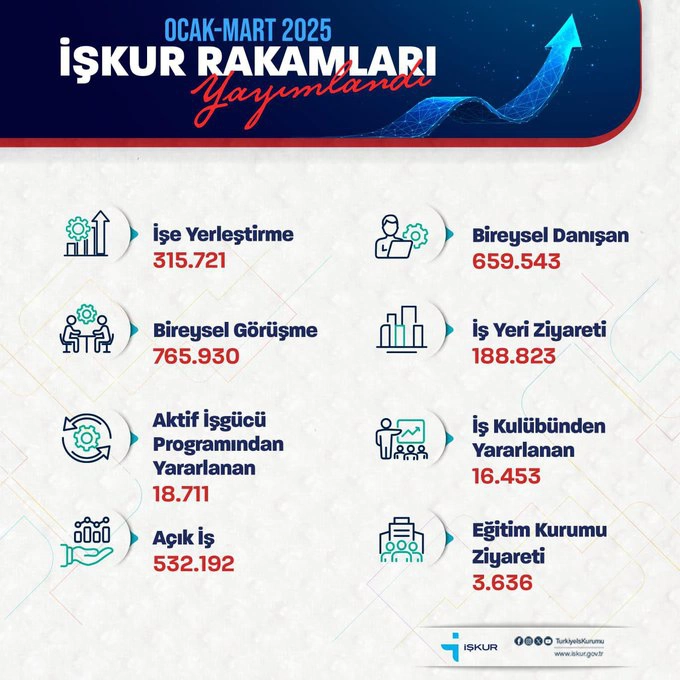 Işıkhan, "Ocak-mart döneminde toplam 315 bin 721 işe yerleştirmeye aracılık ettik. 765 bin 930 bireysel görüşme ve 188 bin 823 iş yeri ziyareti gerçekleştirdik. 532 bin 192 açık iş (işveren tarafından talep edilen-ihtiyaç duyulan eleman) tespit ettik." ifadelerini kullandı.