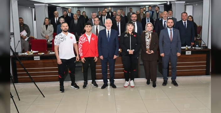Başarılarıyla Isparta'nın adını duyuran milli sporcular Fatmagül Çevik ve Mustafa Erdoğan, antrenörleri Ferit Şen ile birlikte Isparta Belediye Meclisi'nin kasım ayı toplantısına katıldı. Toplantı öncesinde sporcuları makamında ağırlayan Belediye Başkanı Şükrü Başdeğirmen, her iki sporcuyu da başarılarından dolayı tebrik ederek altınla ödüllendirdi. Başkan, Fatmagül Çevik'in uluslararası alandaki başarısının Isparta için bir gurur kaynağı olduğunu vurguladı ve Mustafa Erdoğan'ın da benzer başarıları elde edeceğine inandığını belirtti. Ayrıca, antrenör Ferit Şen'e de katkılarından dolayı teşekkür etti. Başkan Başdeğirmen, milli sporcular ve belediye meclis üyeleriyle birlikte hatıra fotoğrafı çektirdi.