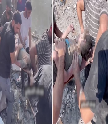 ALPARSLAN DİYARI- İsrail'in Gazze'ye yönelik saldırılarına dün bir yenisi daha eklendi. Yerle bir olan binanın enkazından çıkarılan küçük bir kız çocuğunun öldüğünü zannetmesi ve taşıyanlara "Beni mezara mı götürüyorsunuz?" diye sorması yürekleri sızlattı.