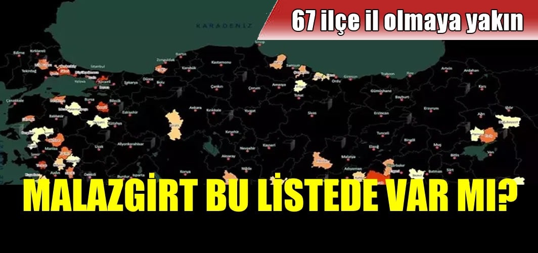 İl olma potansiyeli yüksek 67 ilçe ise şöyle: