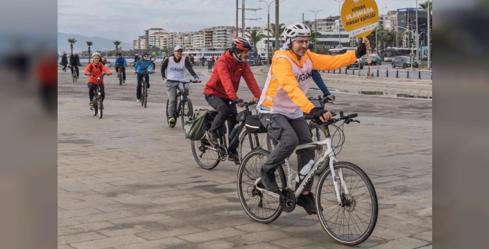 Etkinlik, 'Görmeyenler Daha Çok Kabartma Kitap Okusun Diye Umuda Pedal Çeviriyoruz' sloganıyla hayata geçirildi. Bisikletliler, www.maratonizmir.org adresi üzerinden kayıt yaptırarak etkinliğe katıldı. İki saat süren sürüşün ardından bisikletliler İnciraltı'nda toplandı.