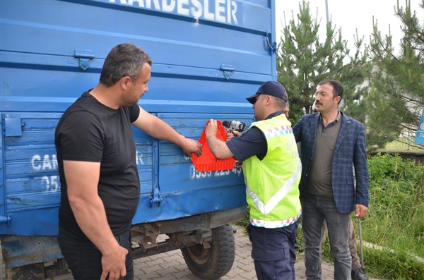 Anlatımların ve gelen soruların yanıtlanmasının ardından römorkunda reflektörü olmayan çiftçilere reflektörler dağıtıldı ve takılması sağlandı.