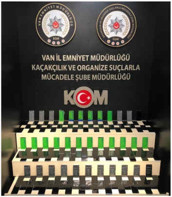 Operasyonlarda, 655 paket sigara, 204 cep telefonu, 82 elektronik sigara, 11 elektronik sigara likiti, 22 bin 18 makaron, 507 kilo 212 gram açık tütün, 2 wifi cihazı, 5 kulak içi kulaklık, 6 pil, 2 gizli kamera ve 3 bluetooth cihazı ele geçirildi.