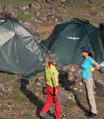 Daha sonra Ertuğrul'un liderliğinde tırmanışa geçen 8 kadın, ilk geceyi 3 bin 200 rakımdaki kamp alanında geçirdi. Ekip, ikinci gün yeniden tırmanışa geçerek saatlerce süren zorlu yolculuğun ardından 4 bin 200 rakımda yer alan kamp alanına ulaştı. Burada bir süre vakit geçiren ekip, "Kadına Yönelik Şiddete Hayır" pankartı açtıktan sonra, olumsuz hava koşulları nedeniyle dönüş kararı aldı.