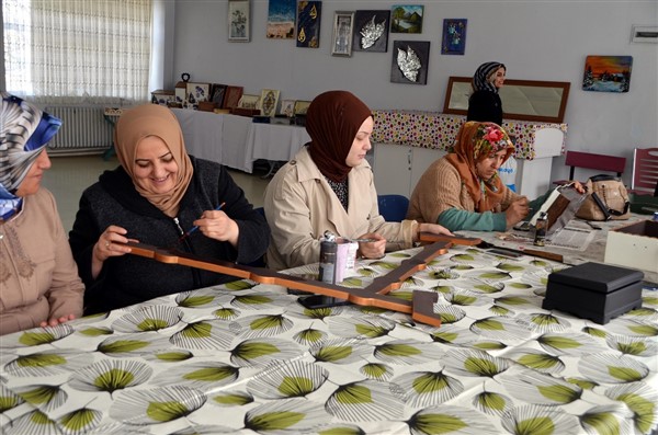 Haftanın belirli günlerinde usta öğreticilerden ders alan kadınlar, ADEM atölyelerinde yaptıkları çalışmalarla el becerilerini geliştiriyor.