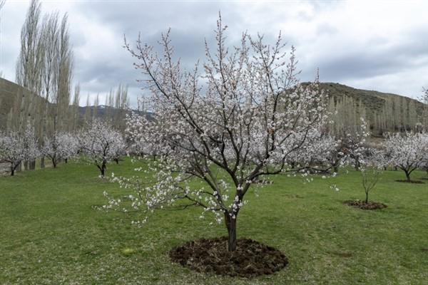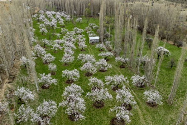 ALPARSLAN DİYARI-Yurt dışına ihraç edilen meyvenin üretildiği bahçeler, beyaz görüntüsüne kavuştu. Aras Nehri yatağında bulunan ve verimli topraklara sahip ilçede, havaların ısınmasıyla çiçek açmaya başlayan bahçelerde renkli manzaralar oluştu.