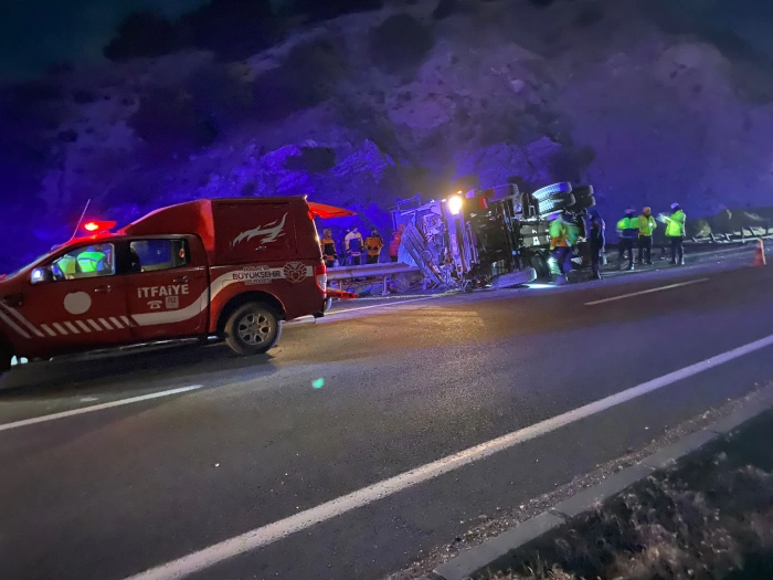 ALPARSLAN DİYARI- Abdullah Dağbaşı (46) yönetimindeki 02 HP 280 plakalı kamyon, Malatya-Adıyaman kara yolu Erkenek Tüneli çıkışında devrildi.