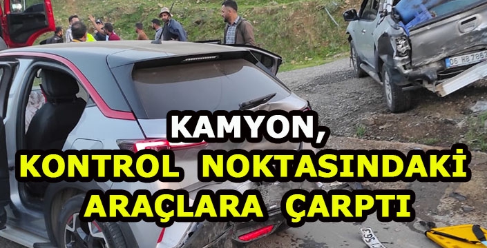 ALPARSLAN DİYARI-Genç-Diyarbakır kara yolunda seyreden, sürücüsünün kimliği henüz öğrenilemeyen 21 EN 421 plakalı kamyon kontrolden çıkarak jandarma ekiplerinin uygulama noktasında bekleyen kamyonet ve otomobile çarptı.