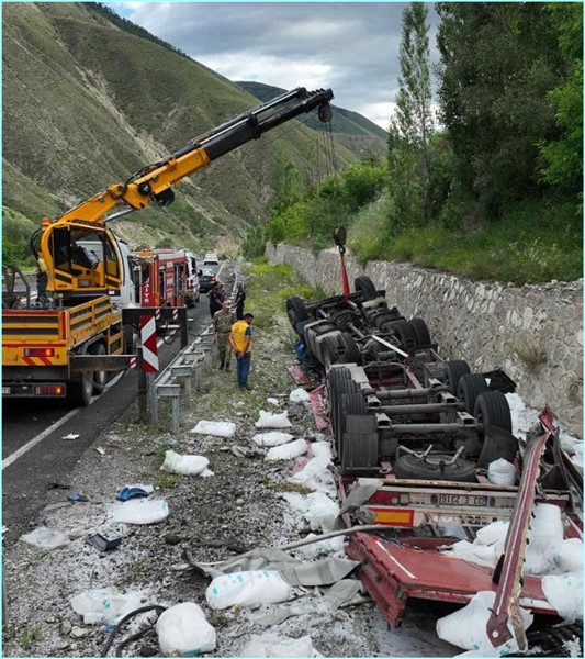 Tırdaki malzemelerin etrafa saçılması nedeniyle ulaşıma kapanan yol, temizlik çalışmasının ardından yeniden trafiğe açıldı.