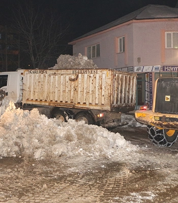 Karlıova Belediyesi yetkilileri gün boyu kar yağışının sürdüğünü, ekiplerin de karla mücadele çalışmalarına aralıksız devam ettiğini belirtti.