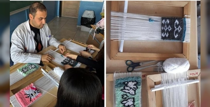 Kars 15 Temmuz Şehitler Anadolu Lisesi'nde, Görsel Sanatlar Öğretmeni Mehmet Doğan rehberliğinde, öğrenciler halı dokuma sanatını öğreniyor ve geçmişin motiflerini geleceğe taşıyor.
