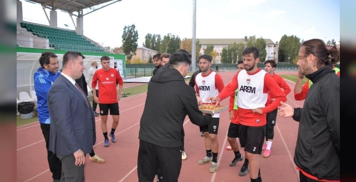 Kars Milletvekili Adem Çalkın, Kars 36 Spor'un antrenmanını yerinde takip edemedi. Ancak takımın moralini artırmak için, Kars Gençlik ve Spor İl Müdürü Mehmet Başköylü'yü temsilen gönderdi. İl Müdürü Başköylü, sporculara tatlı ikramında bulunarak yaklaşan maç öncesi takıma moral verdi.
