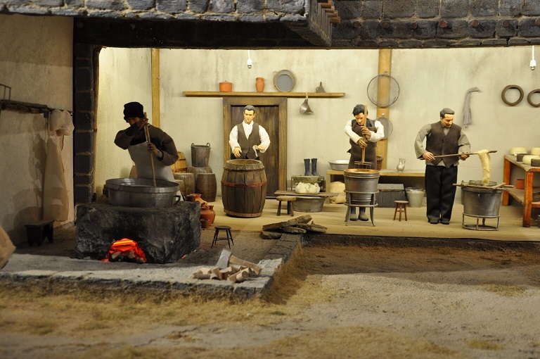 Gravyer peynirinin canlandırmalı anlatıldığı müzede, Kars'a özgü bazı peynirlerin de yapımından kesitler bulunuyor.