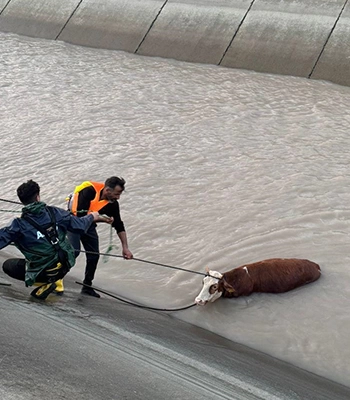 Bölgeye yönlendirilen İl Afet ve Acil Durum Müdürlüğü (AFAD) ile itfaiye ekipleri, halat yardımıyla büyükbaşlardan 4'ünü kurtardı.