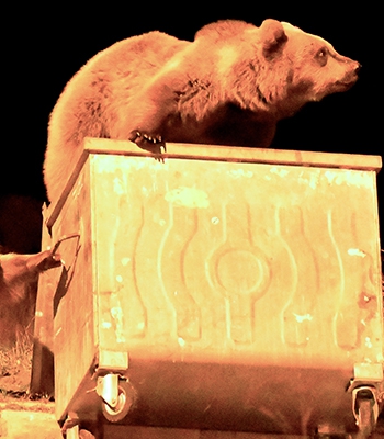 Ormanlık alana yakın yerleşim yerlerinden Tepe Mahallesi, Taşkıran TOKİ konutları bölgesi ve İnönü Mahallesi'ne bazen tek, bazen de gruplar halinde gelen boz ayılar, çöp konteynerlerini devirip içine girerek yiyecek aradı.
