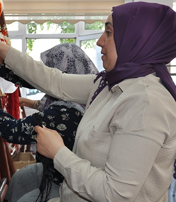 Aralarında ihtiyaç sahiplerinin de bulunduğu 60 kadın kursiyer, el sanatları, halı dokuma ve aşçı yardımcılığı gibi alanlarda eğitim alıyor.