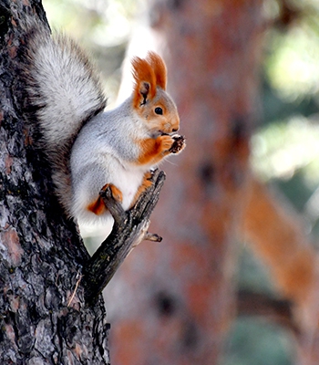Ağaç dallarında gezinen ve kozalak kemiren kızıl sincaplar, doğa fotoğrafçılarınca görüntülendi.