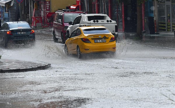 Şiddetli dolu nedeniyle yollarda su birikintileri oluştu, sürücüler ilerlemekte güçlük çekti.