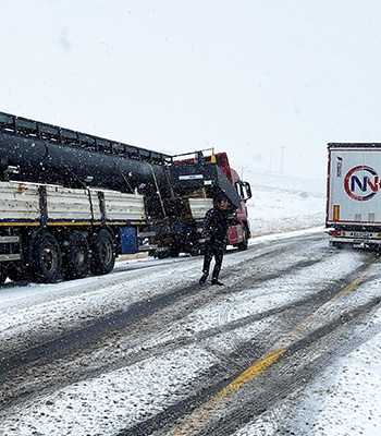 Seyitören mevkisinde de yolda kalan 11 tır için kara yolları ekipleri çalışma başlattı.