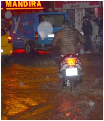 Caddelerde su baskınları oldu, bazı rögarlar tıkandı. Vatandaşlar yollarda güçlükle yürüyebildi.
