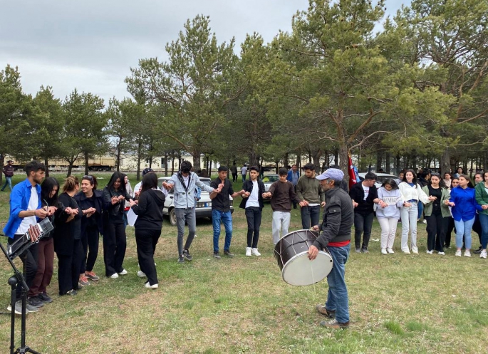 Öğrenciler için Kars Kafkas Atlı Cirit Kulübü tarafından atlı cirit gösterisi yapıldı. Ata binip çeşitli etkinliklerle mangal keyfi yaşayan öğrenciler, davul zurna eşliğinde çekilen halay çekti.