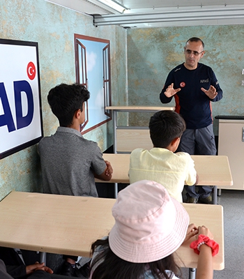 Eğitime katılan gençlerden Yusuf Güneş de "Deprem simülasyon aracında abilerimiz bize ne yapacağımızı öğrettiler. Deprem anında elimiz başımıza koyarak çöktük. Sarsıntı anında biraz heyecanlandık ve korktuk." ifadelerini kullandı.