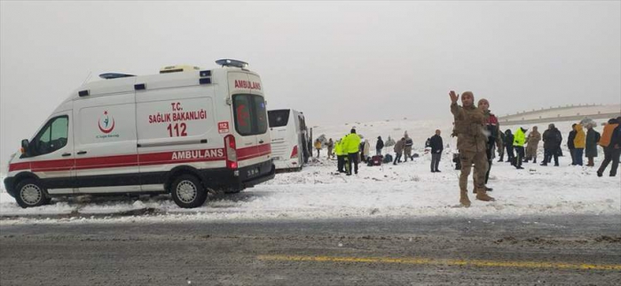 Öte yandan iki otobüs ile bir kamyonun karıştığı zincirleme kazanın meydana geldiği bölgede, kar ve buzlanma etkili oluyor.