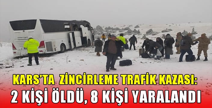 Kars Valiliğinden yapılan açıklamada, Sarıkamış ilçesinin Karakurt mevkisinde saat 07:45 sıralarında meydana gelen zincirleme trafik kazasında, ilk belirlemelere göre 2 kişinin vefat ettiği, 8 kişinin de yaralandığı bildirildi.