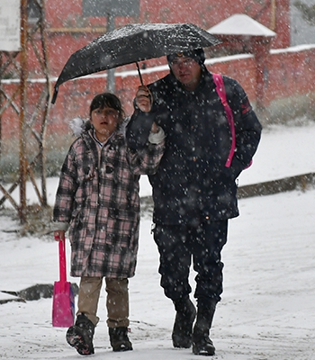 Kentin yüksek kesimlerinde kar aralıklarla devam ediyor.