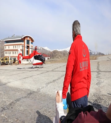 İlk tedavisi merkezde bulunan sağlık kuruluşunda UMKE ekipleri tarafından yapılan T.Ö. için ambulans helikopter istendi.