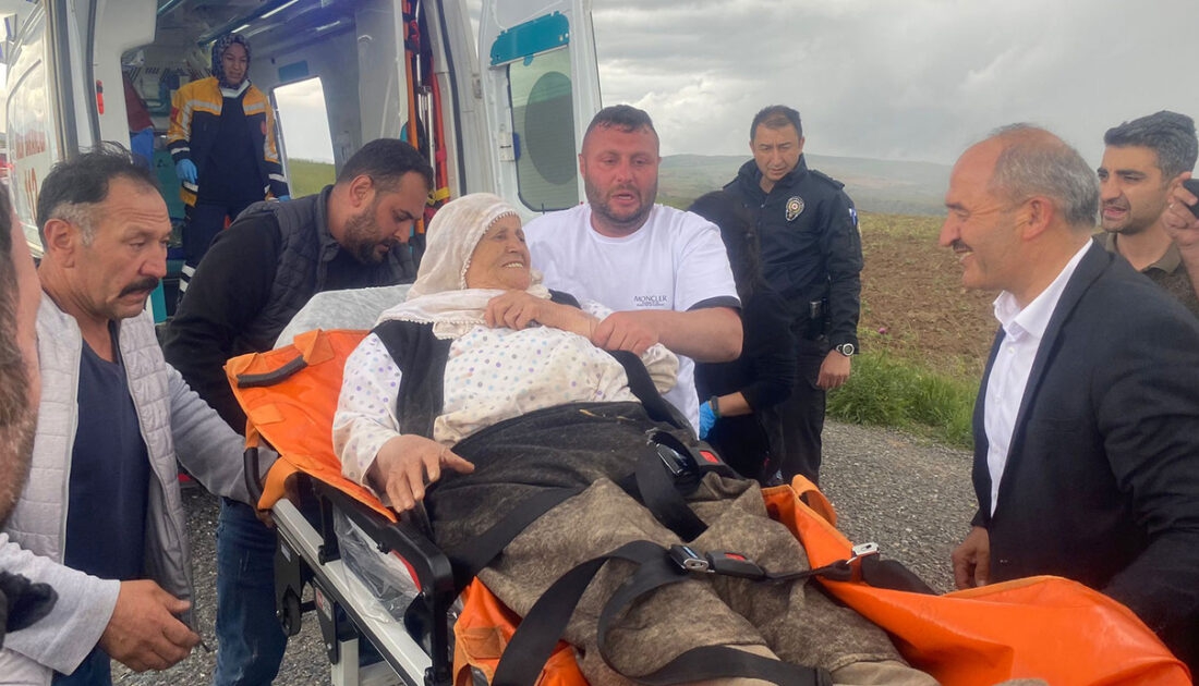 Hayvan otlatan çoban tarafından, evinden yaklaşık 10 kilometre uzaklıktaki arazide bulunan 75 yaşındaki Menşure Dumlu, arazinin engebeli olması nedeniyle traktörle alındı.