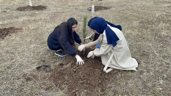 ALPARSLAN DİYARI-Tarım ve Orman Bakanlığı'nın "Geleceğe Nefes Ol" sloganıyla başlattığı kampanya, KYK Öğrenci Yurdu bahçesinde gerçekleştirildi. Etkinlikte, üniversite eğitimi almak için Türkiye'nin dört bir yanından Malazgirt'e gelen kız öğrenciler, çam fidanlarını toprakla buluşturdu. Öğrenciler, doğaya katkıda bulunmanın ve bu güzel anı yaşamanın heyecanını paylaştılar.